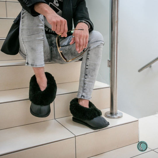 Cosy Shepherd Slippers | Black | Leather & Sheepskin