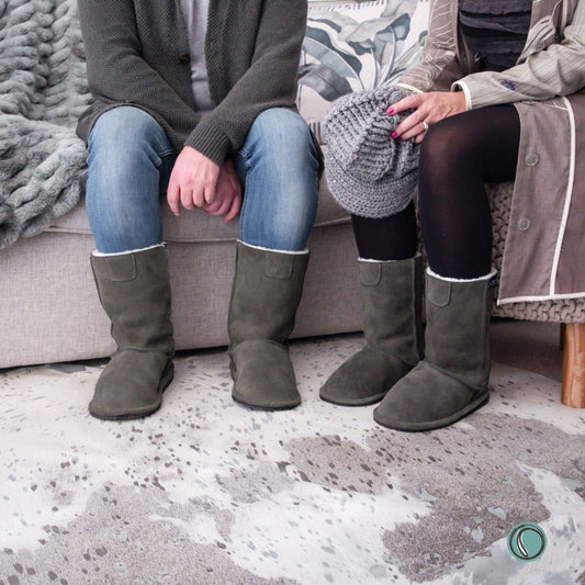 Hugg Boots | Mid-Calf | Olive-Grey | Sheepskin & Suede Boots | MADE TO ORDER