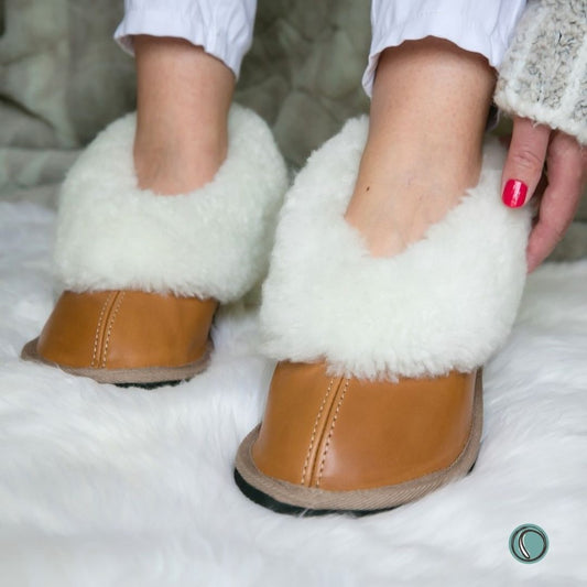 Cosy Shepherd Slippers | Toffee | Leather & Sheepskin
