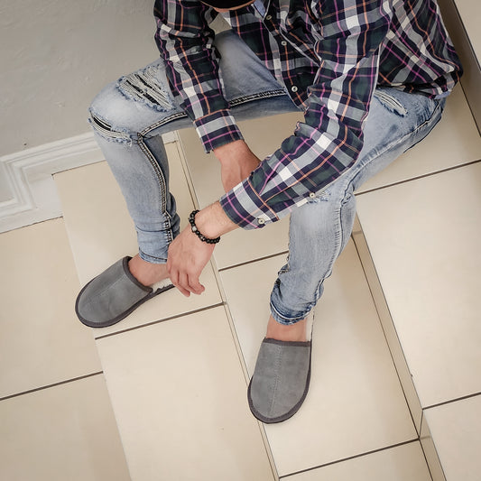 MADE TO ORDER | Mule | Charcoal | Suede | Wool Collar
