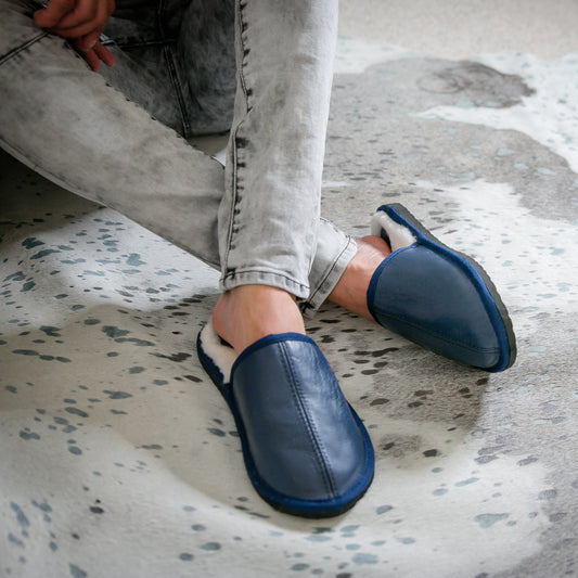 MADE TO ORDER | Mule | Navy Blue | Leather | Wool Collar