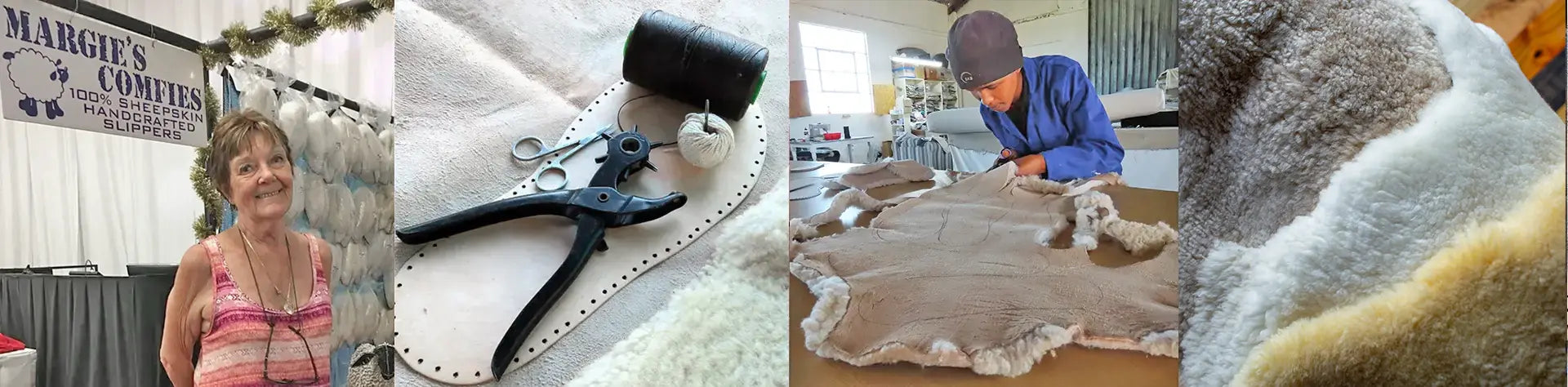 It all began in 1999 on a pineapple farm in Salem, Eastern Cape, when Margie Hoole started crafting beautiful, hand-made sheepskin slippers, lovingly known as "Margie's Comfies”, which she sold at agricultural shows, home industry shops, markets and festivals.