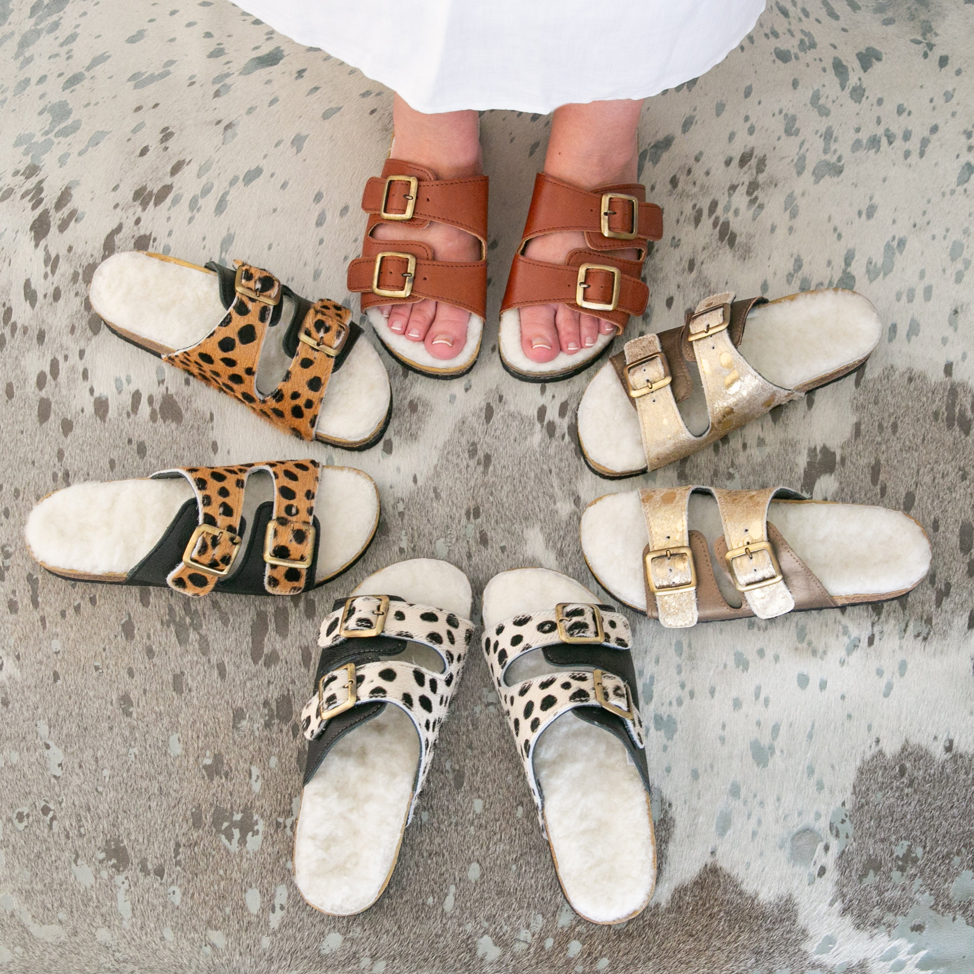 - Sandals with printed uppers: Should be spot cleaned and not washed due to the materials being genuine leather and sheepskin. They will benefit from the Spotless Cleaning Kit.