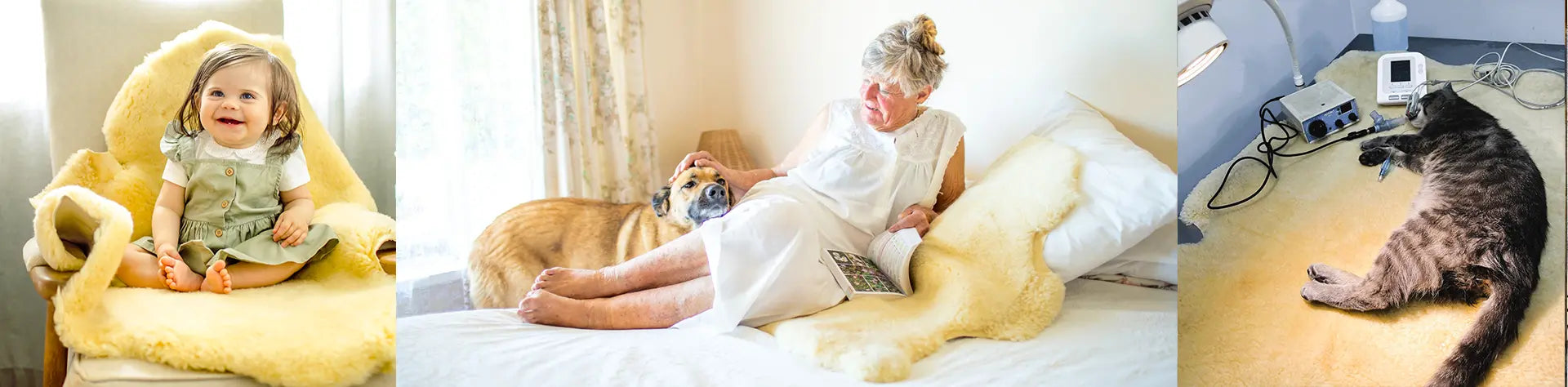 Our medical sheepskin provides physical comfort and truly improves quality of life. It’s about feeling supported, no matter the challenges. From hospital rooms to home spaces, from young children to beloved pets, medical sheepskin has a place in every corner of life.