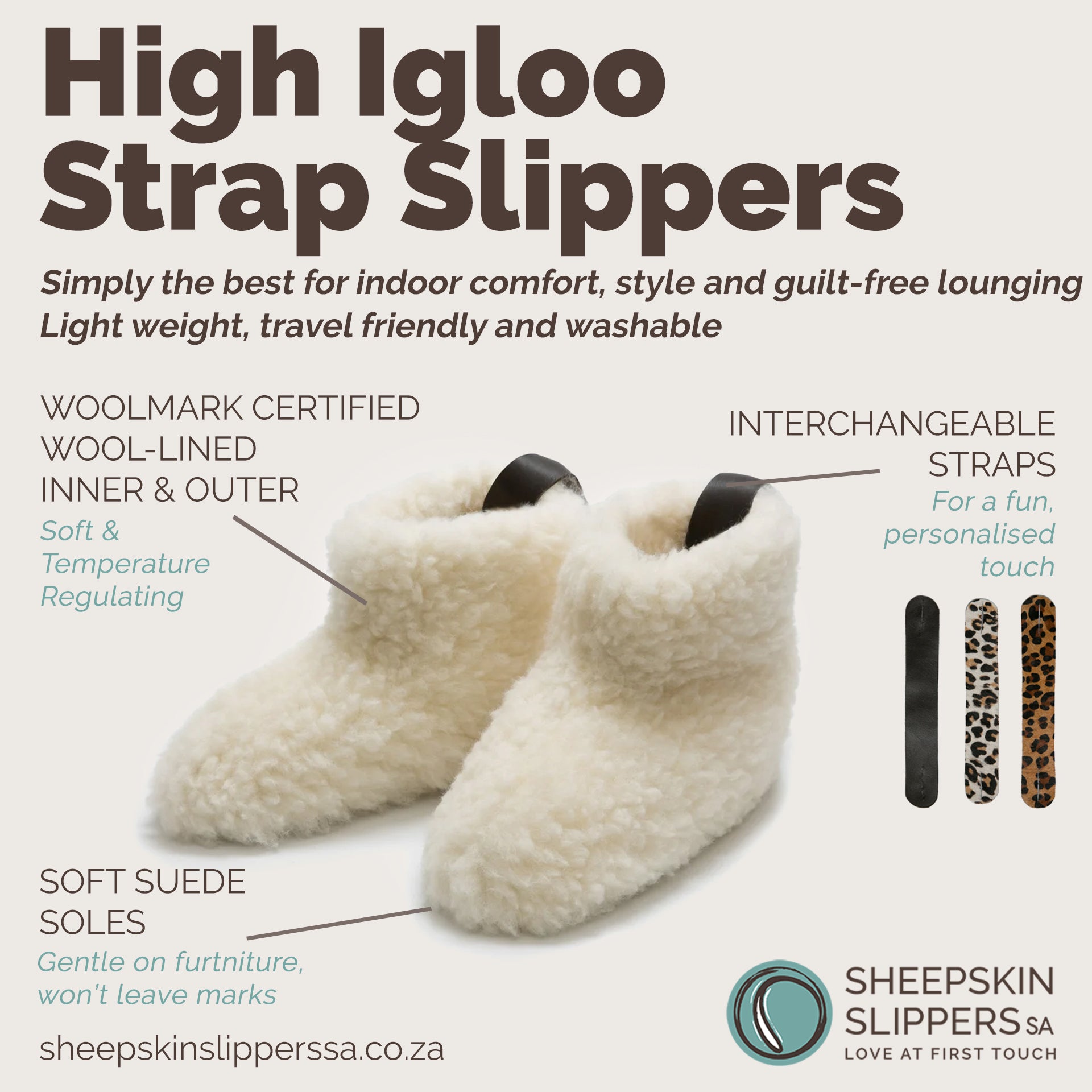 Exclusive to Sheepskin Slippers SA, the Igloo Slippers are your perfect blend of luxury, functionality, and style. Whether at home or on the go, enjoy comfort that feels as good as it looks.