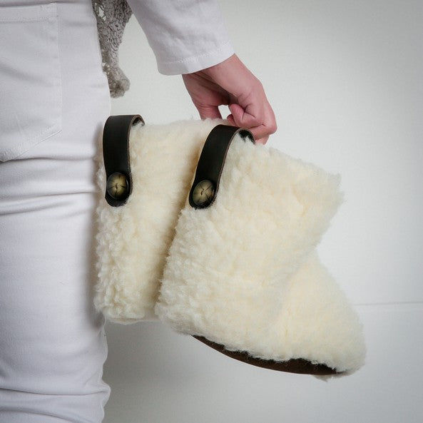 High Igloo Strap Slippers | Cream | Wool Lining
