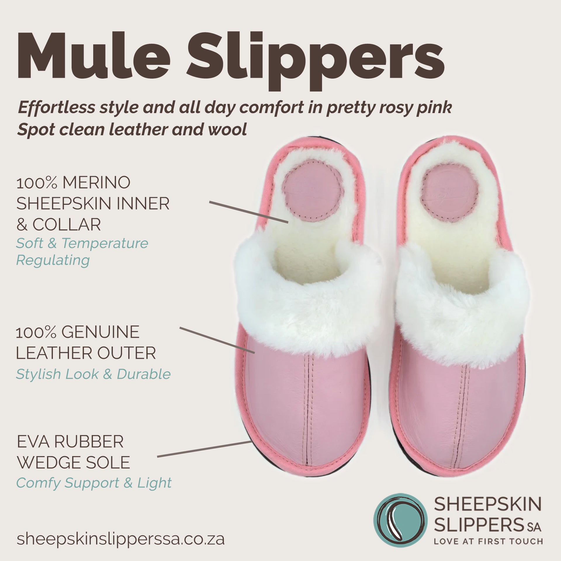 Pretty in pink, is just the start of your relationship with these Rosy Pink sheepskin slippers from our wool collar mule range. Whether you are padding around home or simply relaxing after a long day, these slippers are perfect for everyday use.
